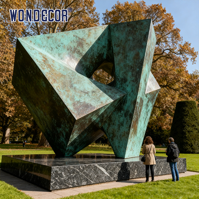 - Unikalne uznanie artystyczne:Nowoczesny abstrakcyjny kształt geometryczny łamią tradycyjne ograniczenia figuratywne.tworzy silny wpływ wizualny poprzez nieregularne sekcje geometryczne i rozproszone kombinacje strukturalneRetro tekstura brązu wspaniale łączy się z awangardowym odczuciem geometrii abstrakcyjnej, pasując do nowoczesnych przestrzeni zewnętrznych, a jednocześnie służąc jako regionalny punkt orientacyjny.