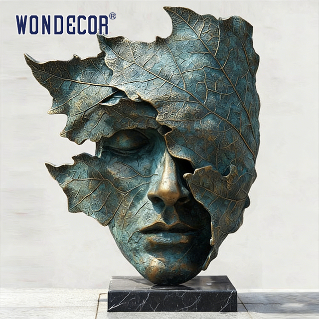 | Podkreślić | outdoor bronze leaf face statue,abstract art bronze sculpture,bronze leaf face garden statue |
